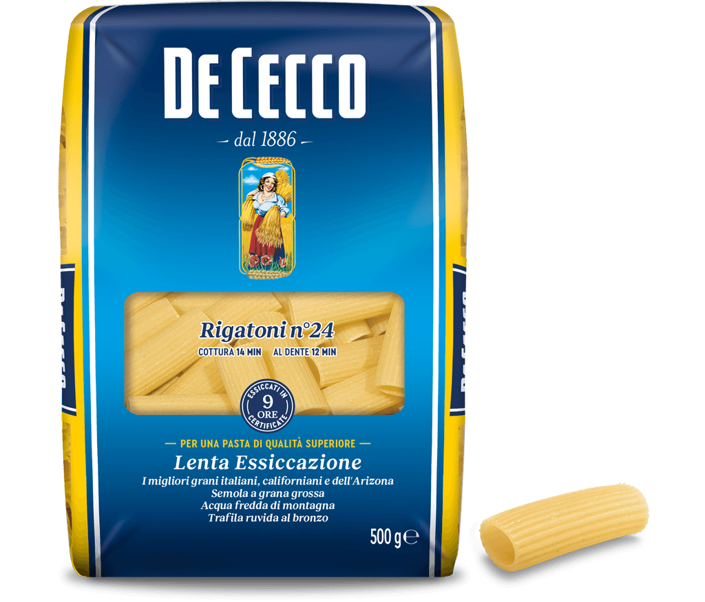 Los Rigatoni son una forma típica de pasta romana y se caracterizan por sus crestas en el exterior y su gran diámetro y grosor.