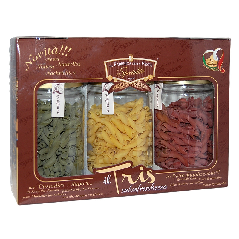 3 frascos herméticos que contienen 350 g de pasta tricolor variada